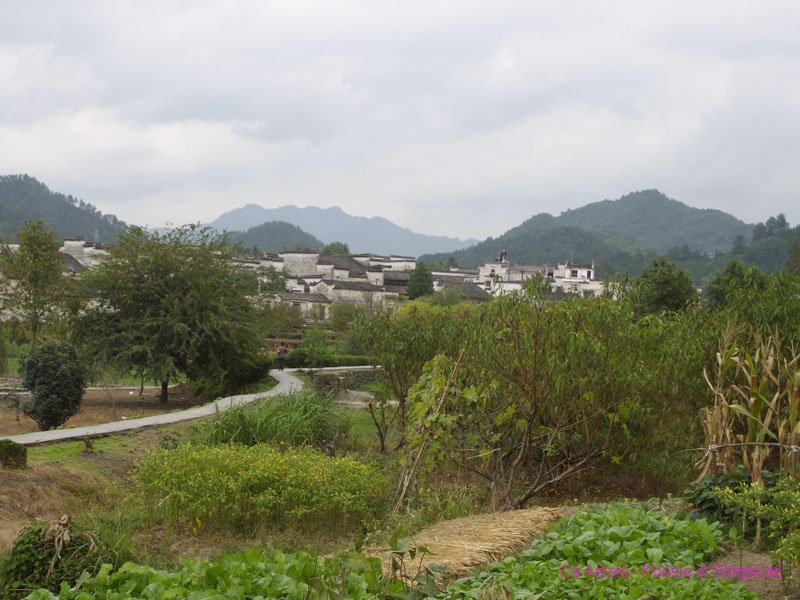Aujourd’hui, encore une journee tranquille a visiter des vieux villages des environs. Plutot que de courir dans tous les sens apres les bus locaux, j’ai choisi l’option voyage organise avec des chinois. Evidemment je ne comprends rien a ce que raconte le guide, mais je profite du paysage. C’est plus montagneux ici, et en general, sur les flancs des montagnes ca reste plus sauvage. Mais on m’avait dit : belle region peu developpee, et en fait j’avais compris : peu peuplee.. Ce qui n’est pas exactement le cas ! Il y a des villages partout… et comme en chine ailleurs, ca se construit… Enfin, on est passe dans des regions cultivees : du riz, bien sur, meme si en ce moment on est entre deux recoltes, beaucoup de legumes. J’ai vu une vache ! Sinon, il y a des buffles, qui servent probablement a donner un peu de viande, mais surtout servent aux labours. Pour les labours, il y a egalement des motoculteurs. Les champs sont minuscules – les plus grands doivent faire 1/2 hect are. Et beaucoup de monde dans les champs, qui travaille. Il y a des chevaux, je ne sais pas encore bien a quoi ils servent. Je pense qu’ils servent a porter des charges, mais je ne suis pas sure.
