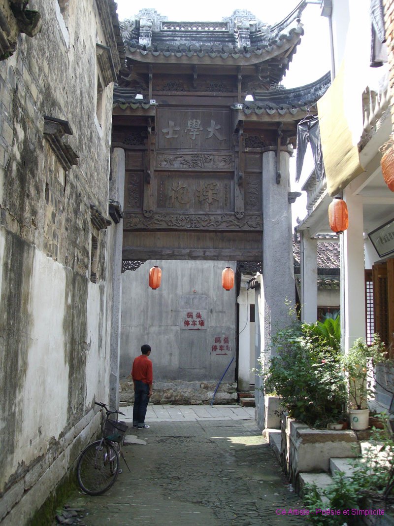 La region est pourrie de vieux villages, ou d’eminents personnages – hommes politiques, lettres – ont cree de magnifiques demeures et jardins dans les temps recules. Dynasties Qing, ming, Song : guides, panneaux explicatifs, autochtones ne sont pas tres precis sur le sujet ! bien sur, un jardin qui se respecte a un petit etang, et des poissons dedans !