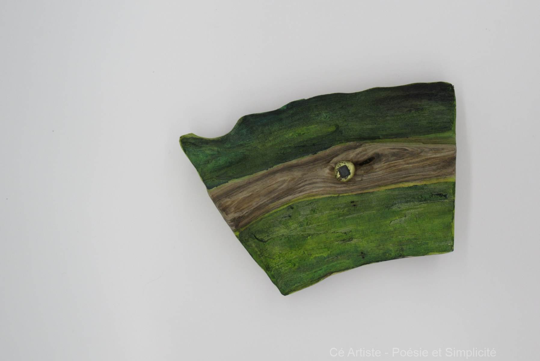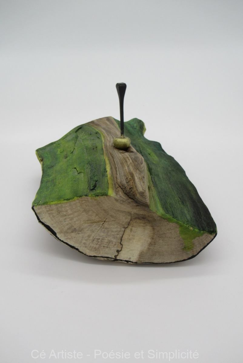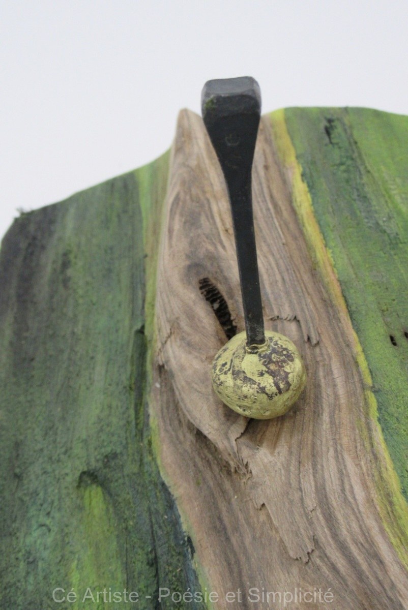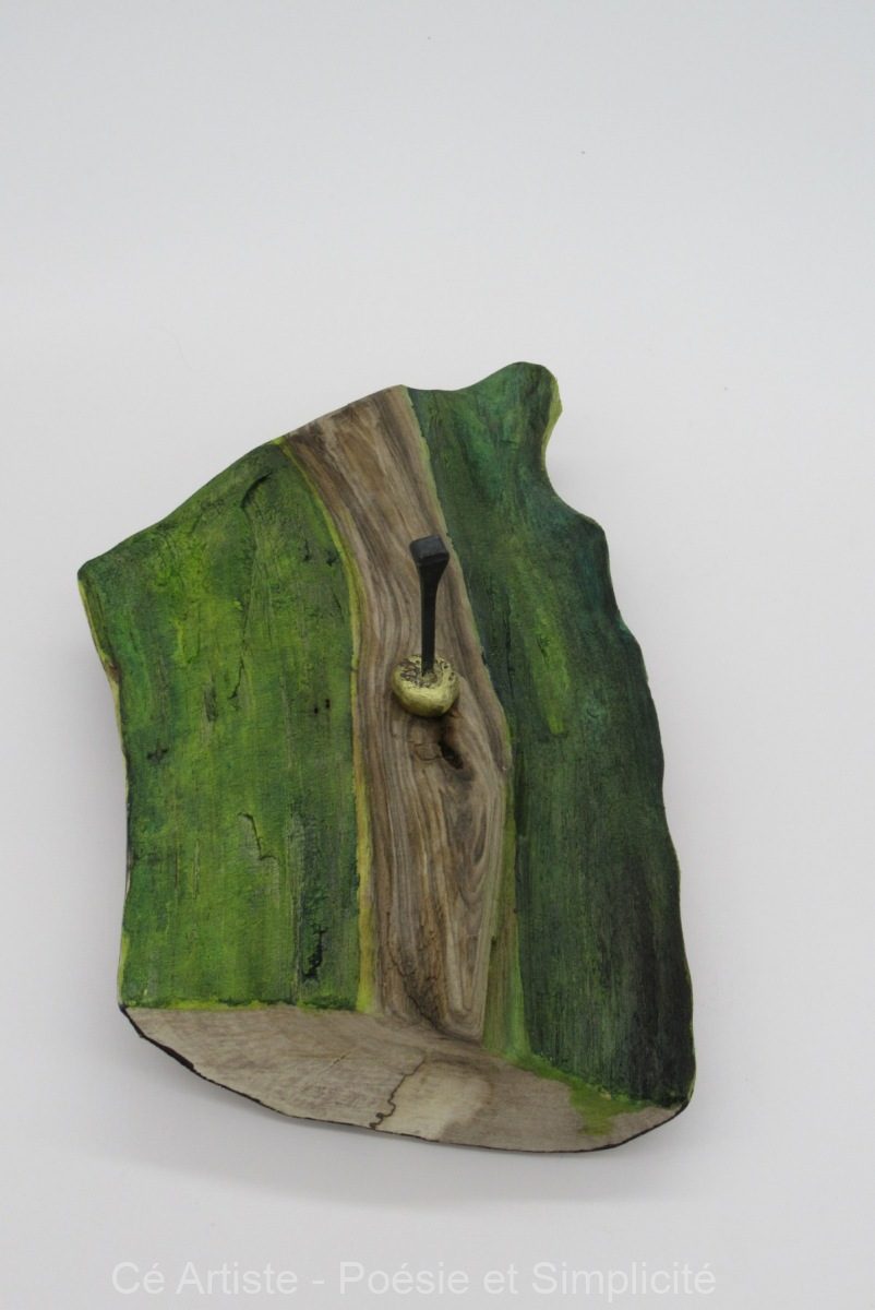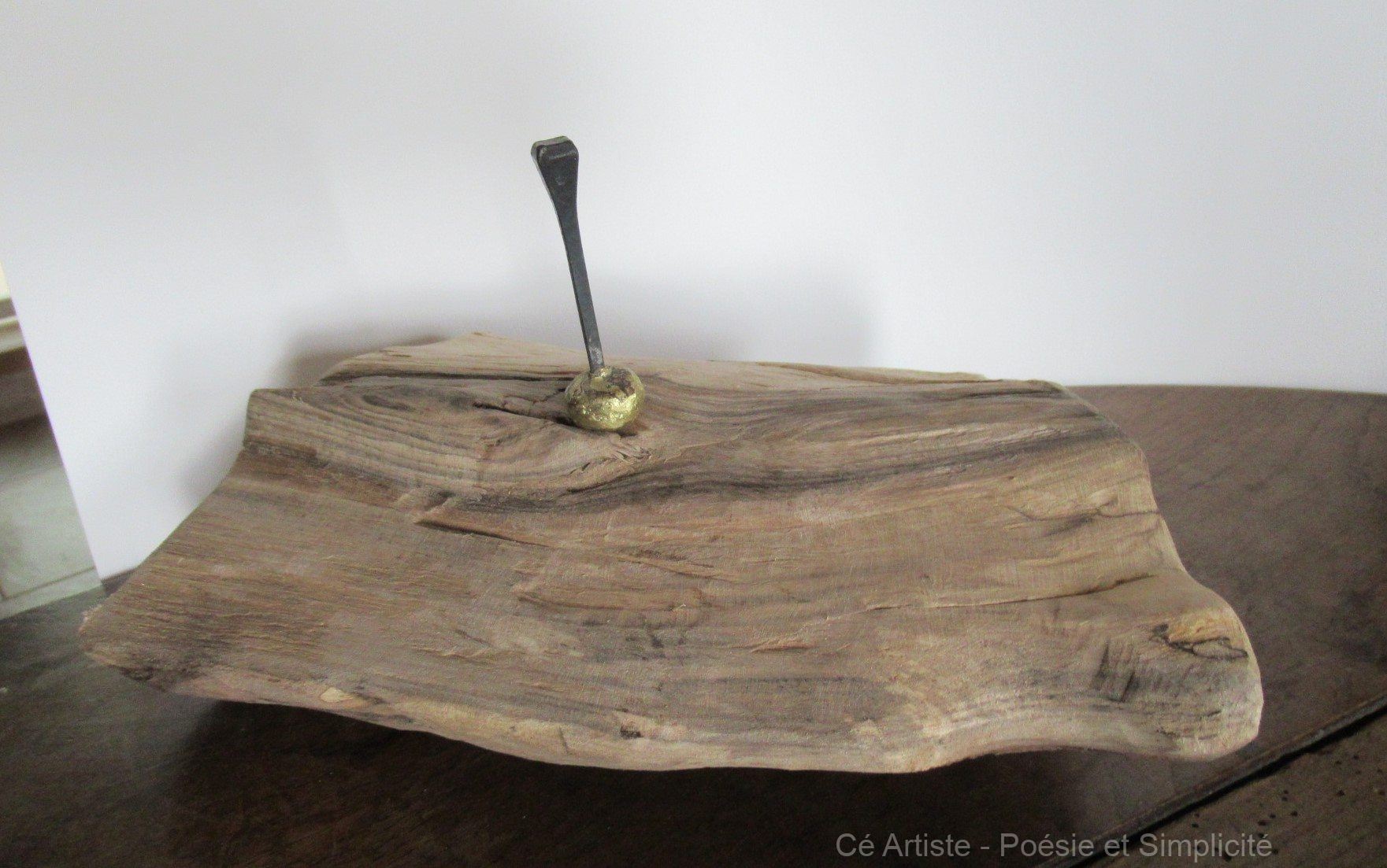 Le bronze et les clous qui l’occupent ne sont pas fixés : en trouvant l’équilibre, ils peuvent être disposés à plusieurs endroits du bois. Vous choisissez.