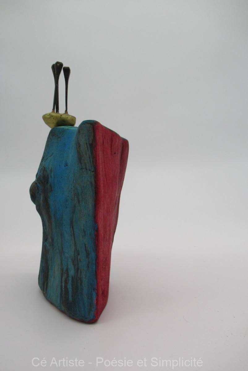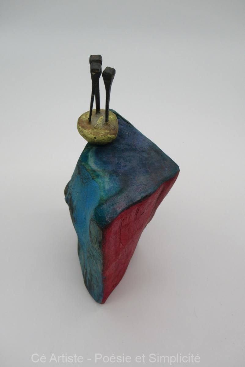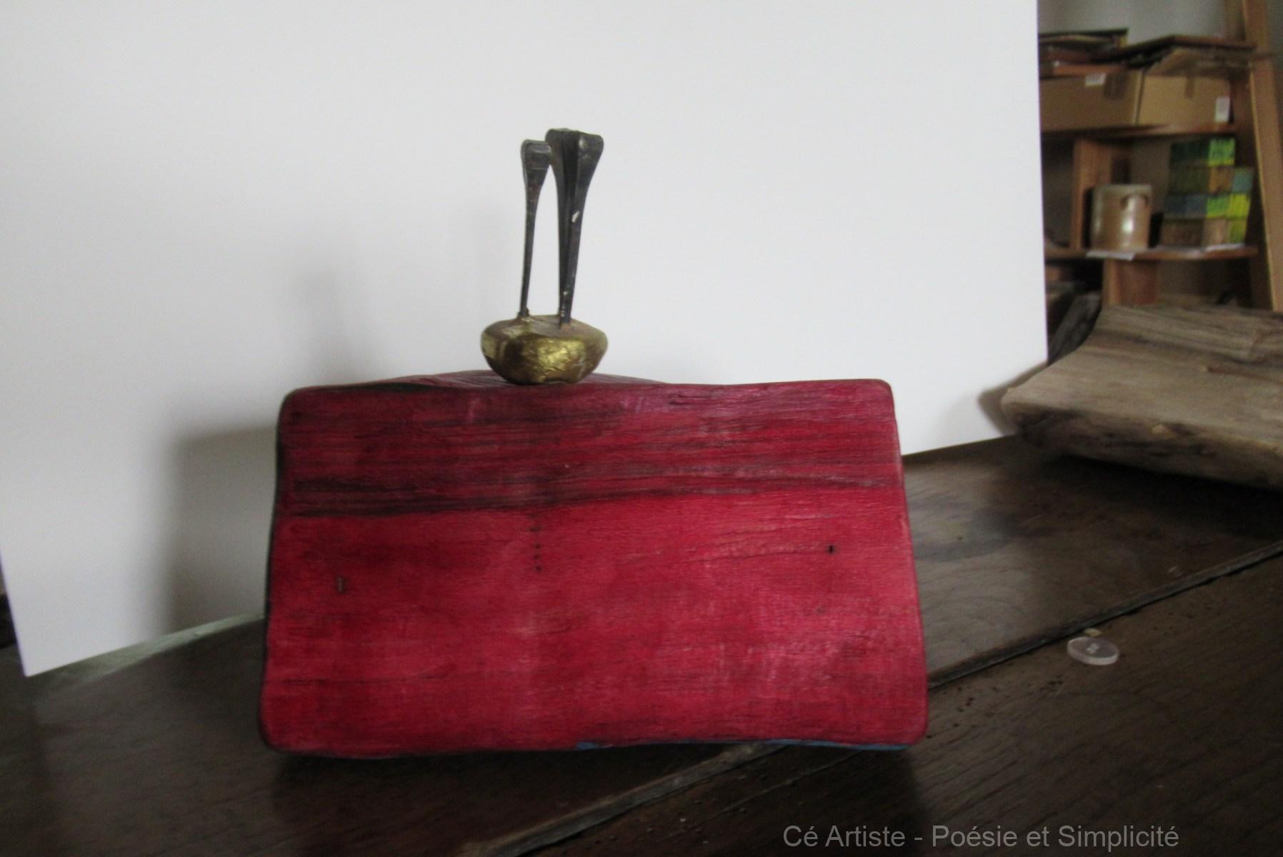 Ce petit objet en bronze, je l’ai réalisé il y a longtemps, plusieurs années. Il trouve ici sa place. Il n’est pas fixé, il peut choir : équilibre dynamique.