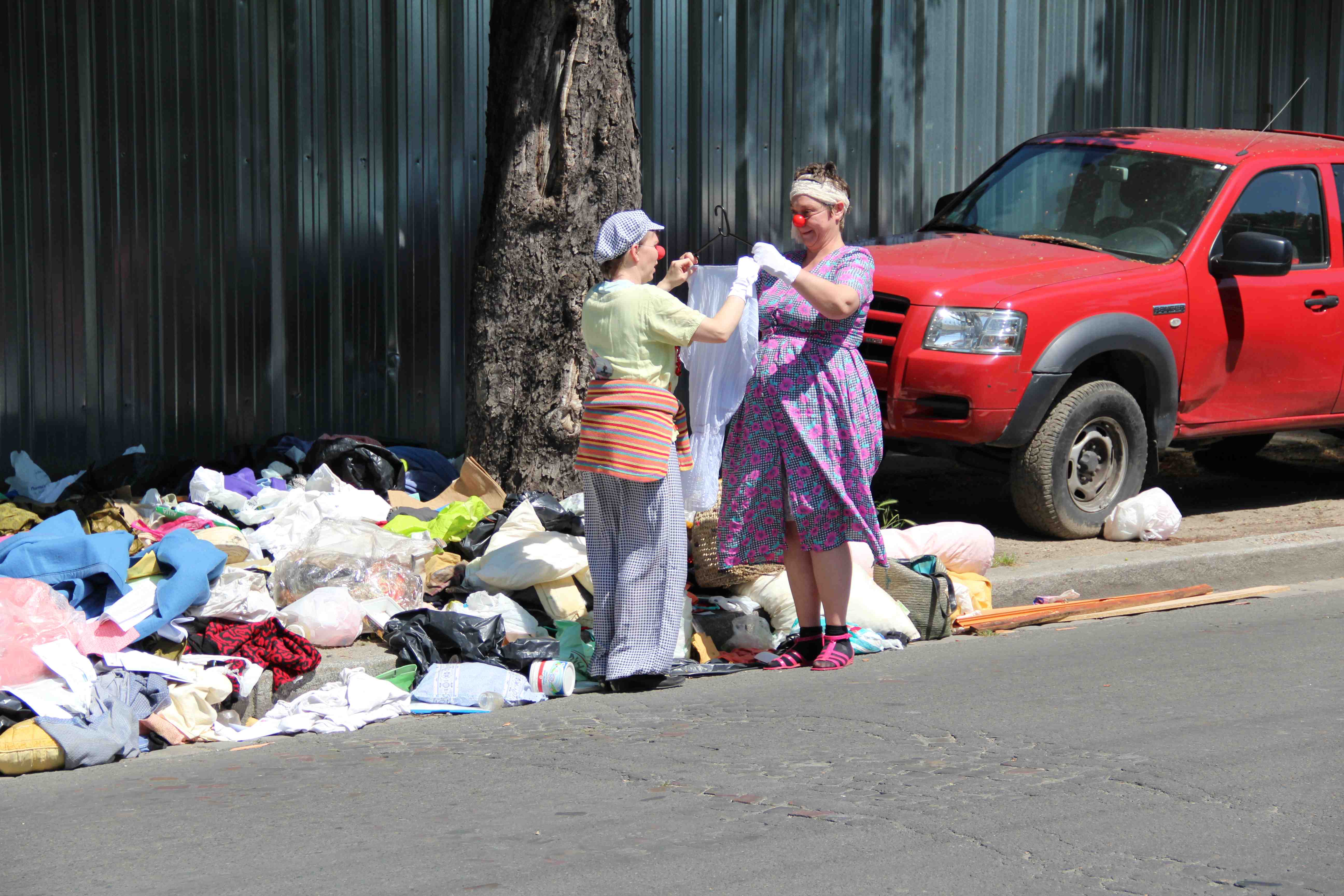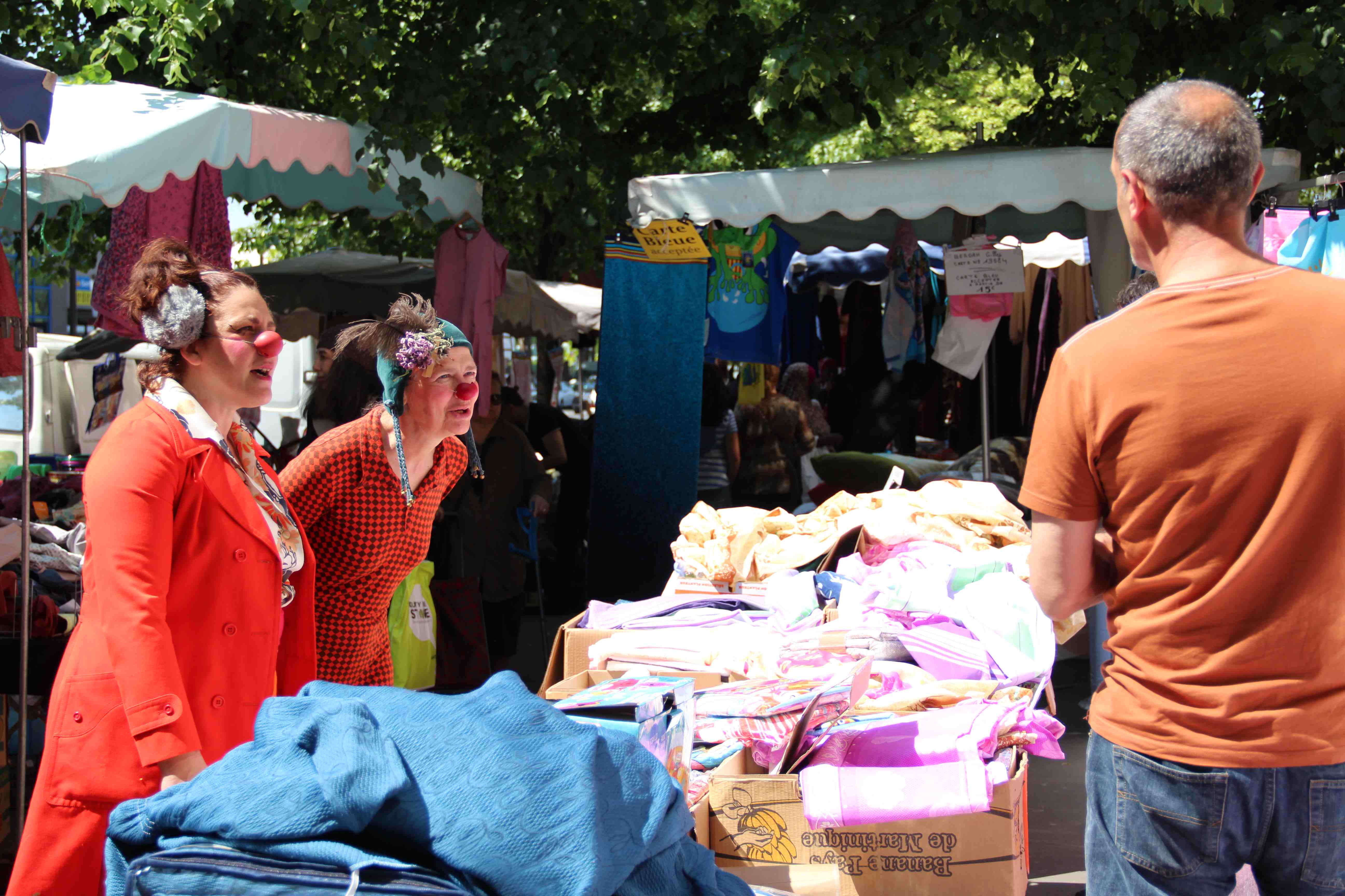 A l’initiative de l’association ‘les clowns de Pantin’, Rose Bigoudi a trouvé des commères (féminin de compère) pour arpenter à Pantin le canal, le marché, le métro, et même… une galerie (avec la collaboration involontaire de la galerie Thadeus Ropac).