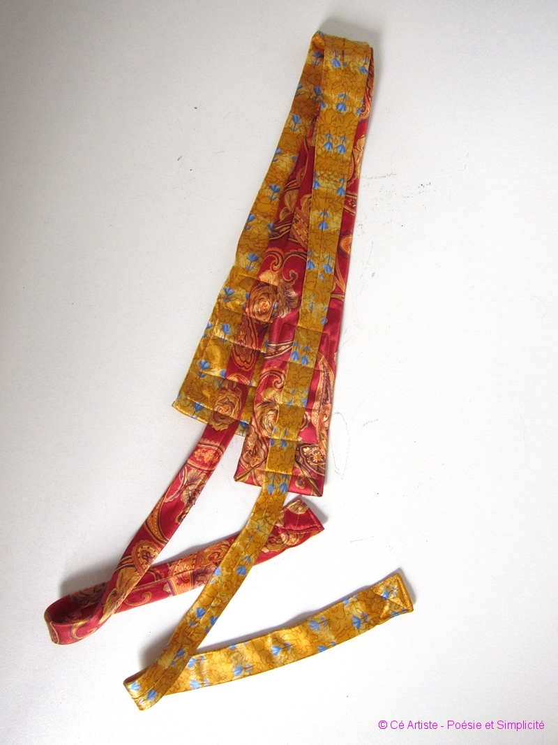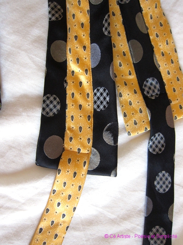 dans un vide grenier, des cravates me font de l’oeil : les couleurs sont magnifiques, leur texture onctueuse…