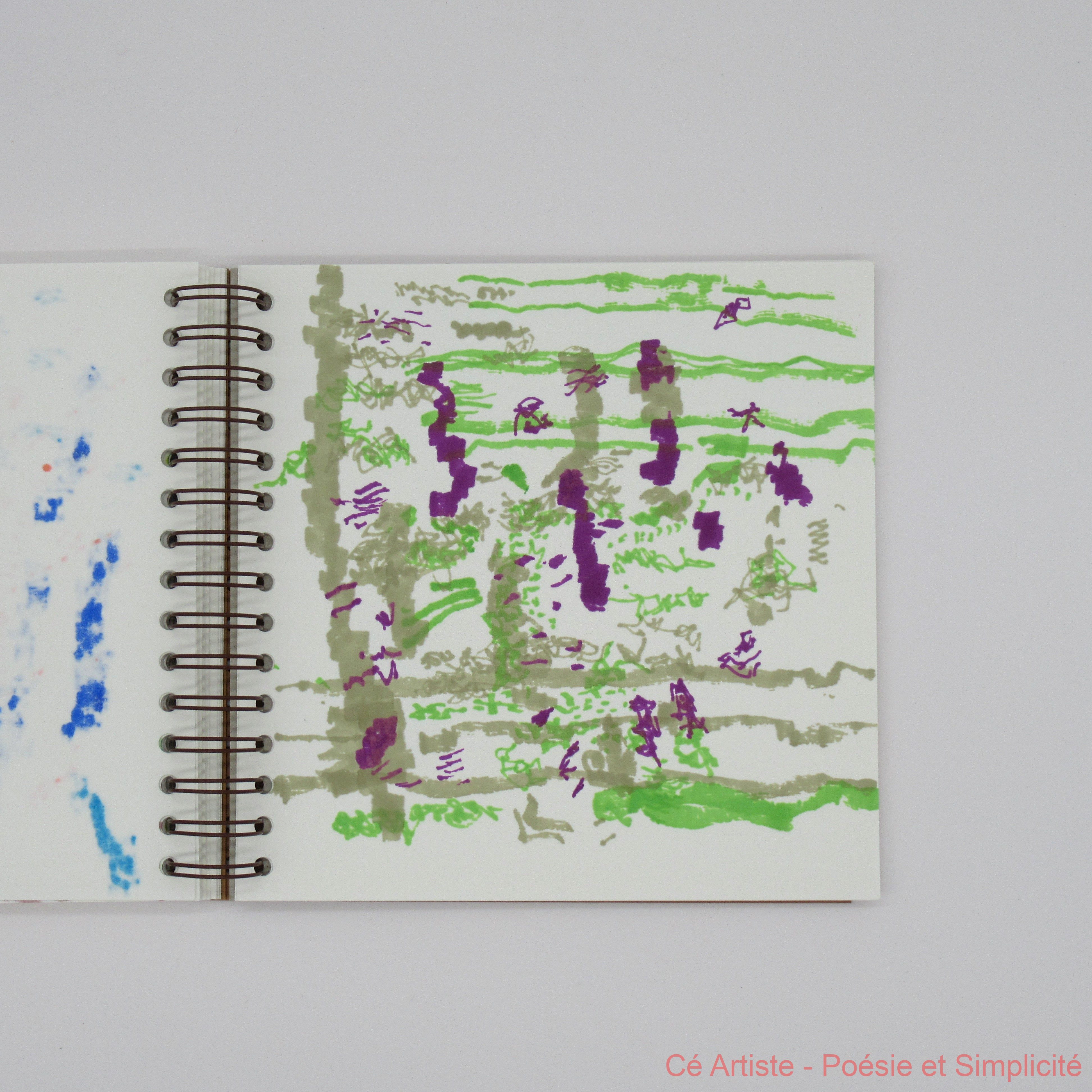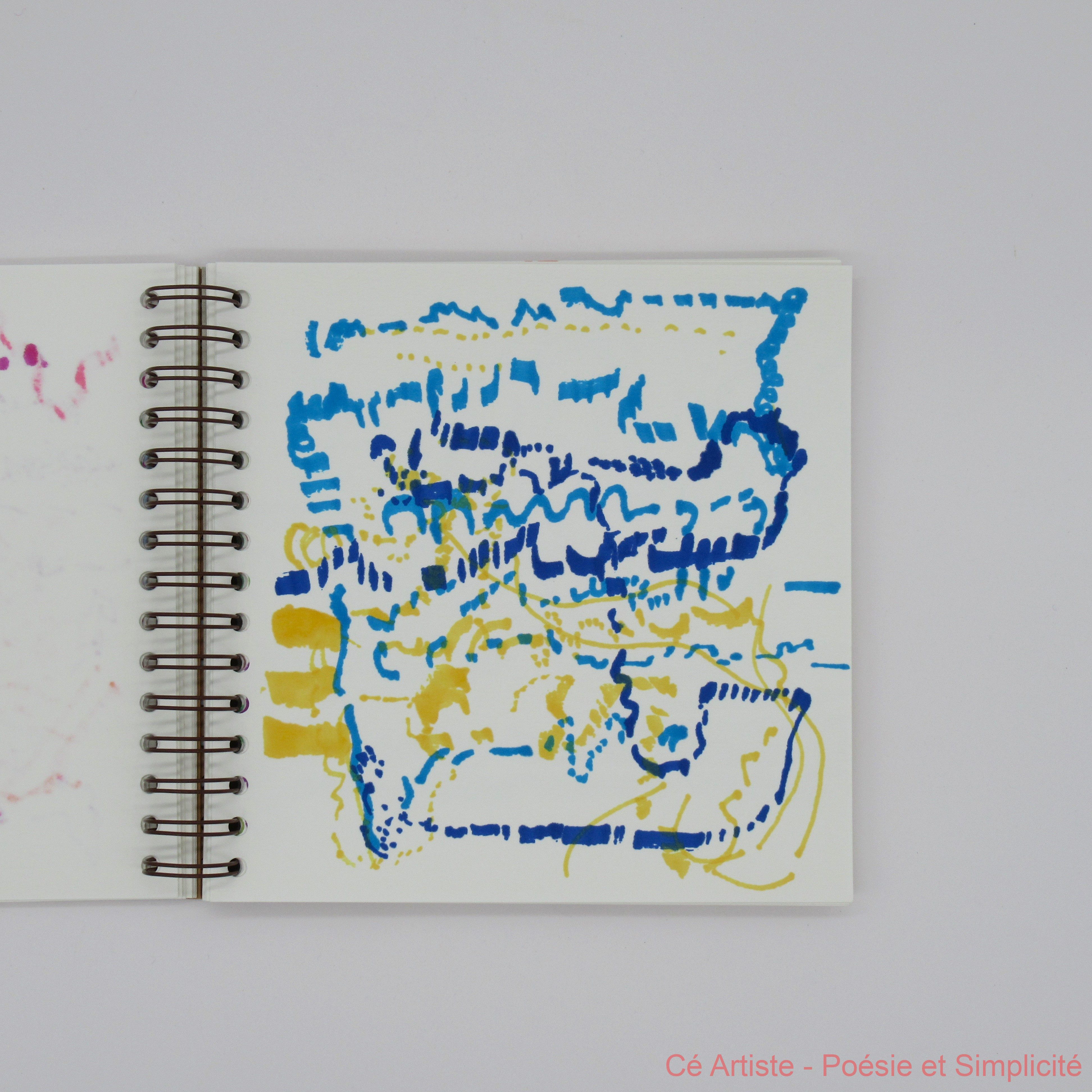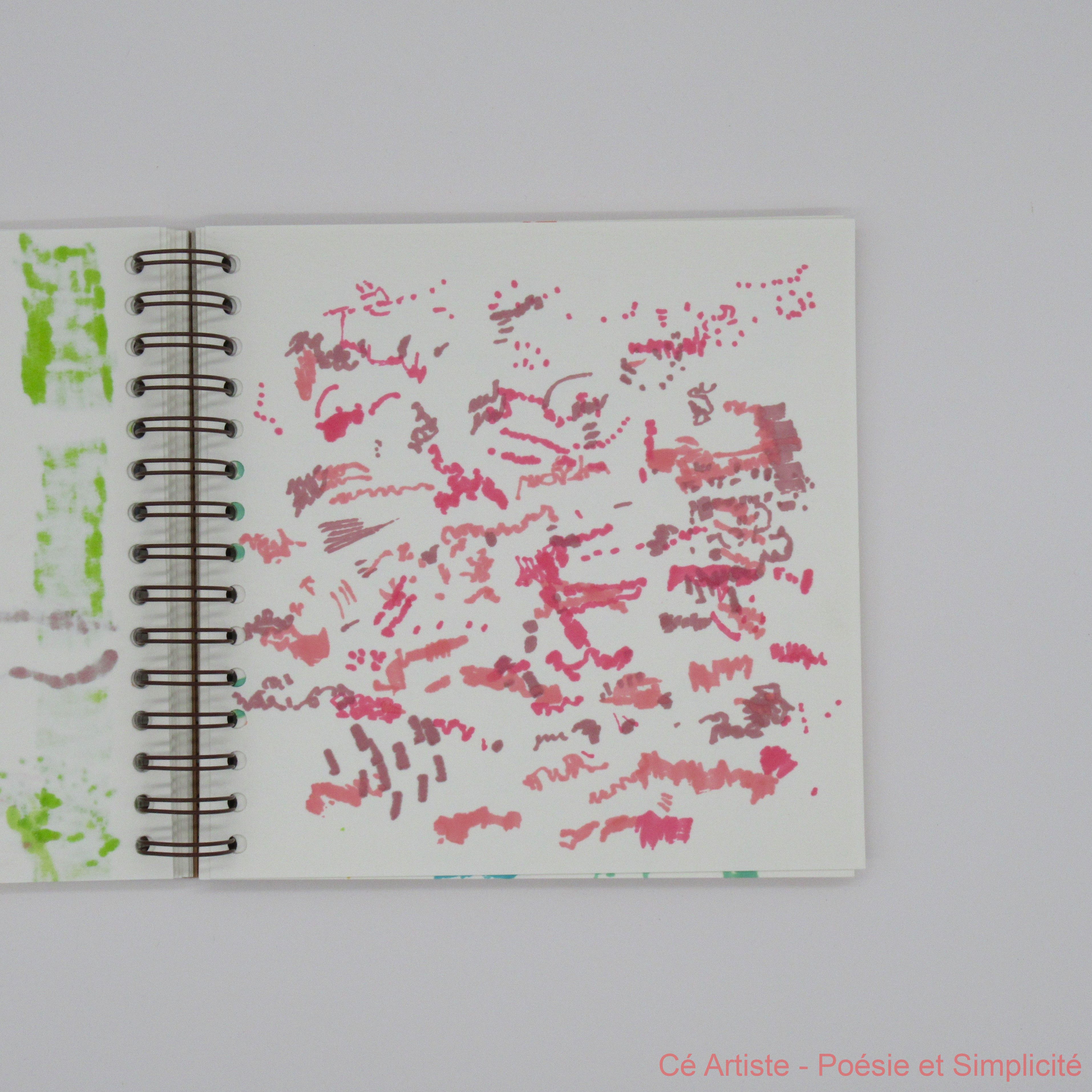 Souvent 3 couleurs par page, j’entr’ouvre un oeil quand j’ai envie d’en changer.