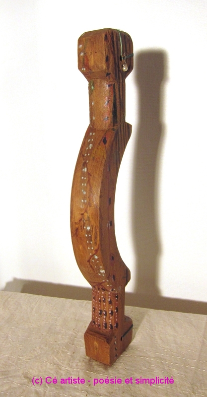 Un bout de bois trouvé, dont la forme évoque immédiatement un corps féminin.