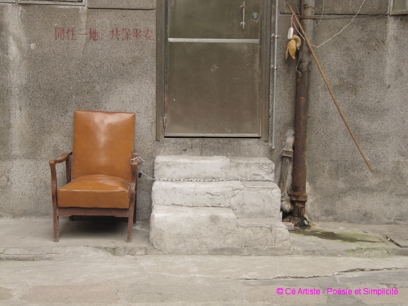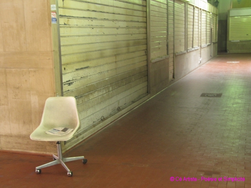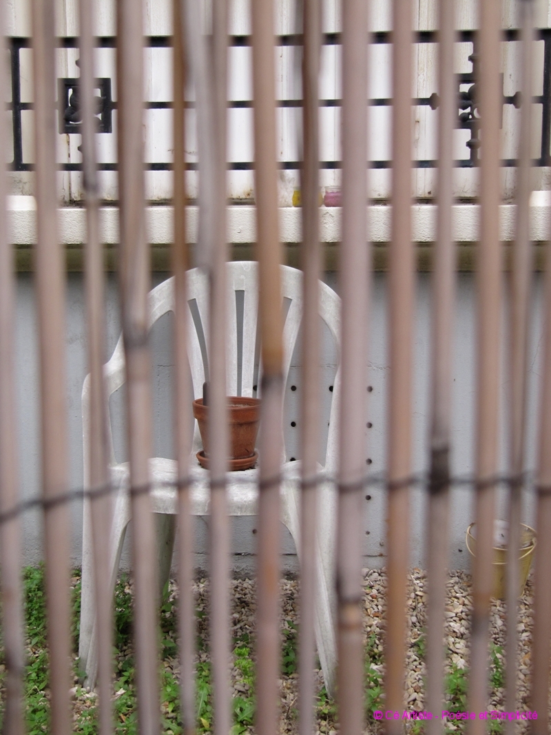 Elles me touchent, seules ou par deux ou par plus, confinées ou exposées, témoins de jours plus fastes ou promesses de l’aube… en voilà une série: des Chaises !