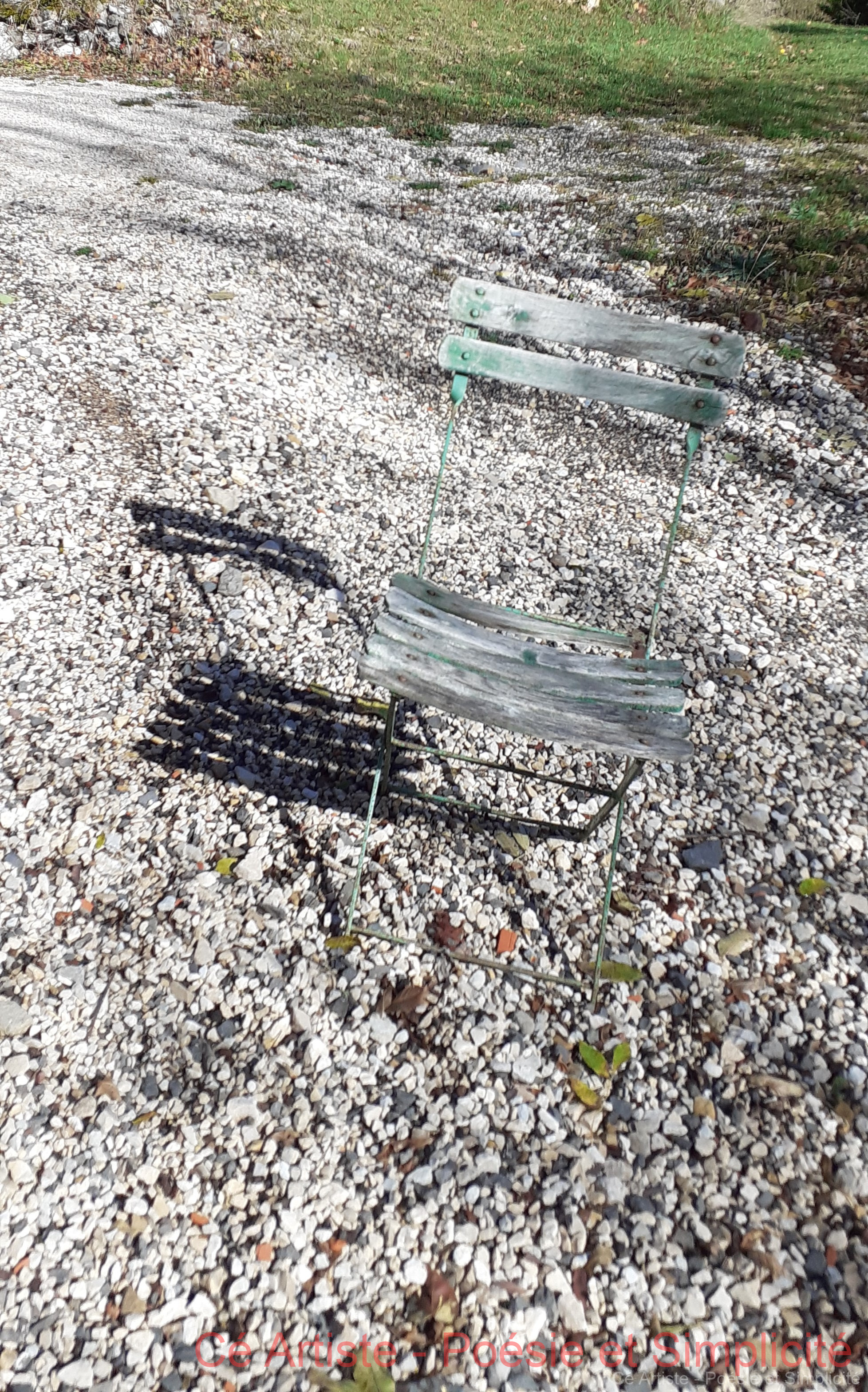 Ici quelques photos de ce voyage; bien sur une visite de cimetière, et une chaise sur le gravier. On voit mieux son ombre que la chaise même.