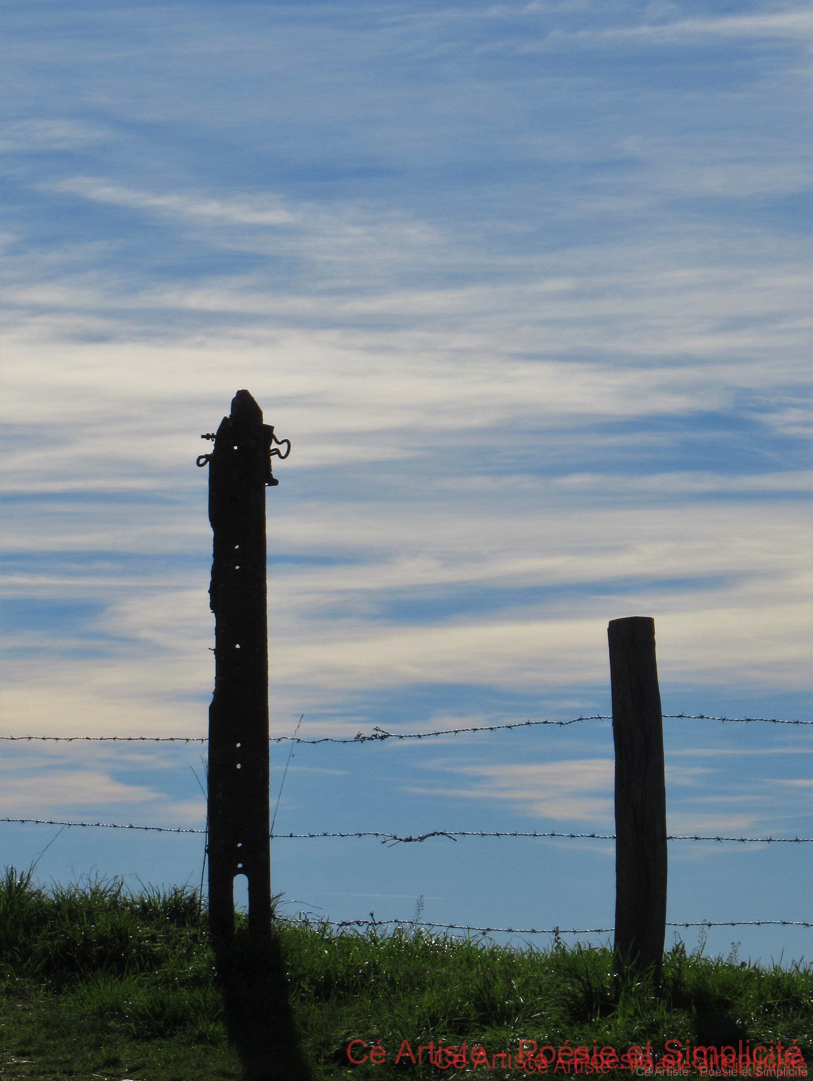Un piquet de champ a connu des jours où il était poteau électrique. Maintenant, il est comme un gardien qui veille les troupeaux …