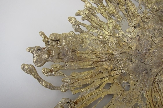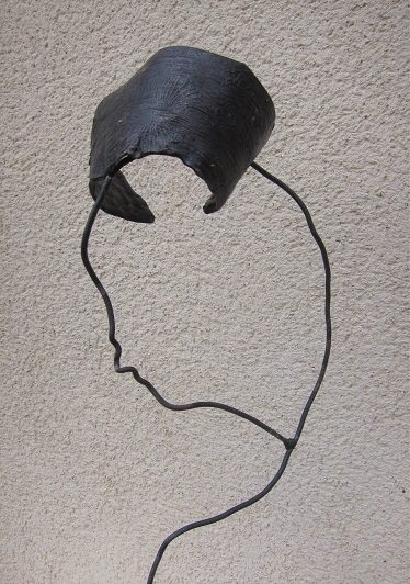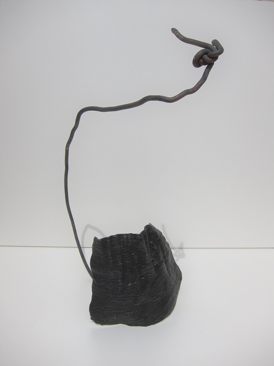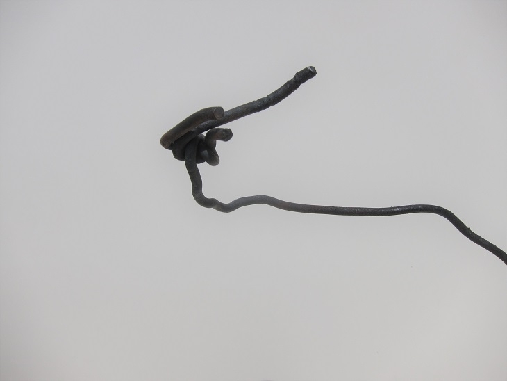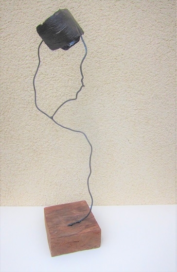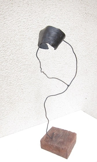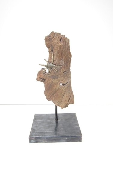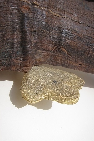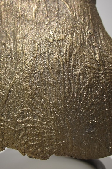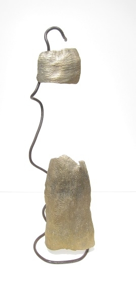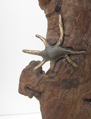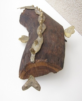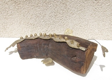j’ai aimé travailler avec des éléments existants déjà, en les agençant entre eux : la gazelle, le turban ont eu pour point de départ du fil de fer ayant déjà une forme, une histoire et que j’ai trouvés dans l’atelier. les bronze qui les vêt utilise un motif d’insecte xylophage trouvé sur une buche destinée à l’origine à alimenter une boulangerie.